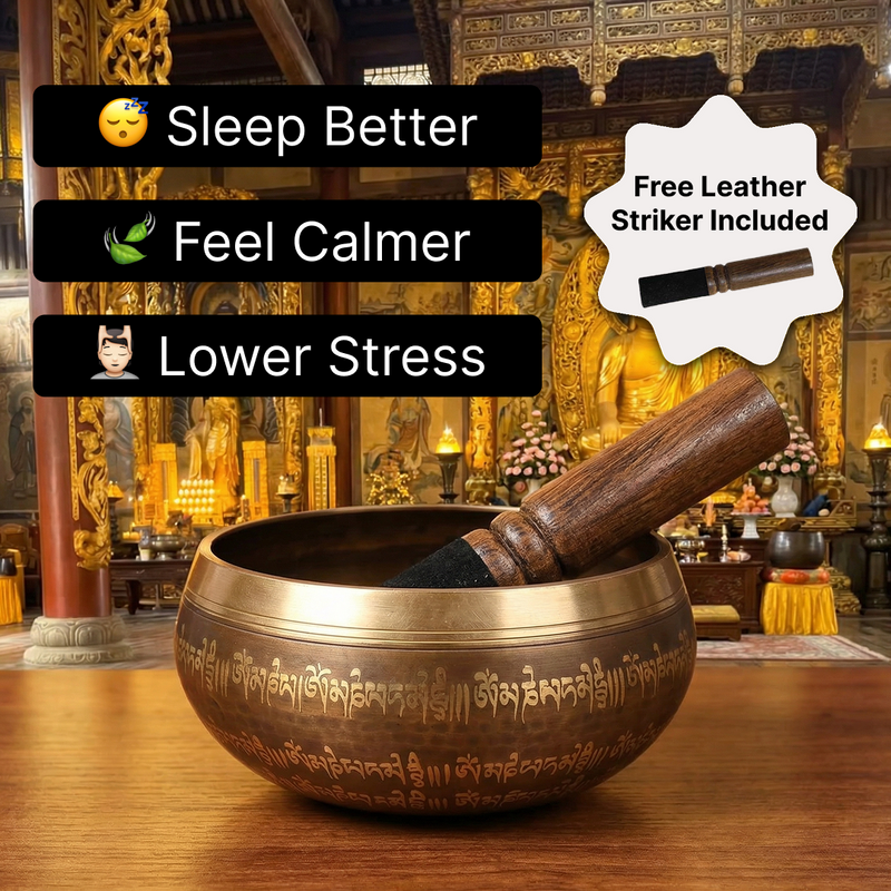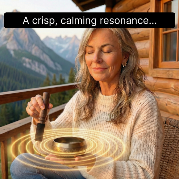 Place Reliss' Singing Bowl on its hand-sewn cushion and hold the leather-wrapped mallet lightly. Strike the rim gently for a single clear tone, or draw the mallet slowly around the outer edge to build a continuous, room-filling resonance. The seven-metal alloy produces vibrations that are not just heard but felt - the kind that settle the nervous system and signal to your body that it is time to slow down. Most people feel a noticeable shift within their first session.
